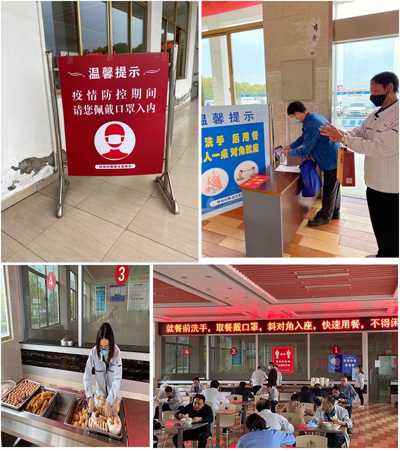 2020年新冠肺炎疫情期间,按照上级政府“外防输入、内防扩散”的总体要求,坚决打赢疫情防控阻击战。自2月1日起,公司员工餐厅取消堂食,采取“工作人员统一打餐、各部门定时取餐”的方式,既避免人员聚集,又保障生产期间员工正常用餐。