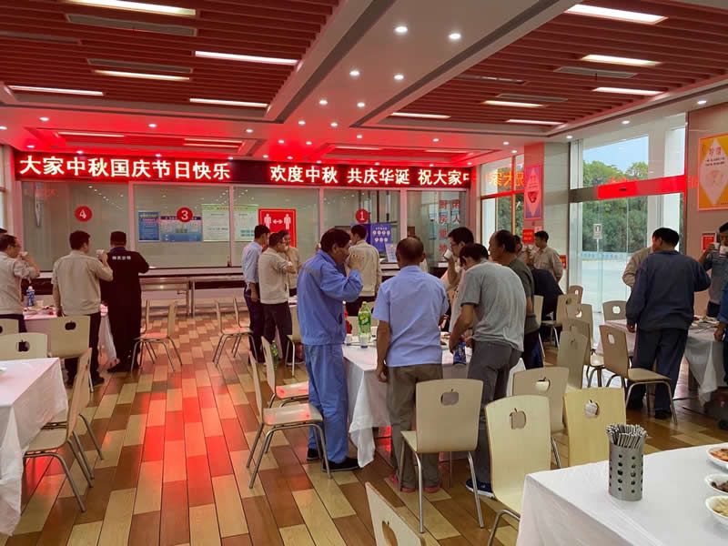 2020年10月1日,MK体育/mksport体育·官方网站在员工餐厅举行了“欢度中秋、共庆华诞”双节晚宴活动,公司总经理徐振华等高层领导与坚守岗位的一线员工欢聚一堂、共度佳节。