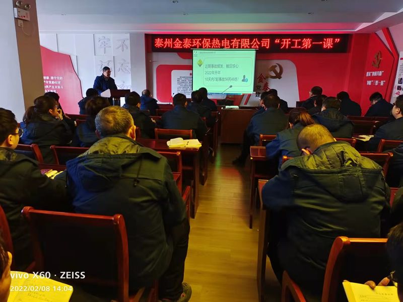 2月8日公司热电事业部组织开展了“开工第一课”活动,由总经理徐振华主讲。徐总利用PPT形式,通过分享2022年开年以来全国发生的事故,结合公司以往发生的典型事故案例,剖析了当前严峻的安全生产形势,要求全体员工要认清暴露的根源问题,狠抓防范整改措施的落实,持续、规范、有效、真实开展安全工作。要求全员进一步提升安全意识和认识,严格执行制度和规程,严格执行“两票”,开展风险辨识分析,落实管控措施。