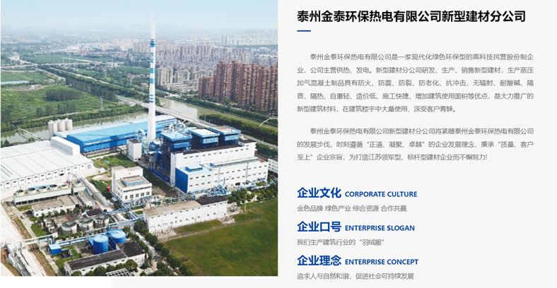 MK体育/mksport体育·官方网站位于“水陆要津,咽喉据郡”之称的历史文化名城--江苏泰州,是一家现代化绿色环保、高新技术型民营股份制企业。公司主营供热、发电,致力于发展环保事业,奉献清洁能源。2020年3月成立金泰环保热电有限公司新型建材分公司,分公司是集研发、生产、设计、销售为一体的专业化新型建材企业。