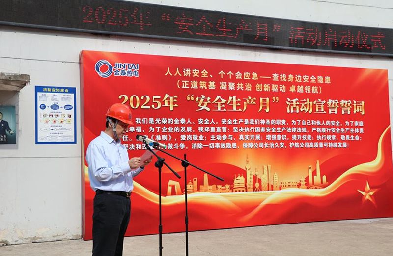 启动仪式由公司副总戴俊宏主持,董事长、中高层管理人员及员工代表参加。8:30,全体参与人员在热电事业部执行总经理季佩生的领誓下进行了庄严的安全宣誓仪式,展现了金泰人良好的精神风貌。表达了对安全生产的坚定承诺和决心。随后,热电事业部代表李江进行了表态发言,承诺将以实际行动践行安全誓言,确保安全生产工作落到实处。