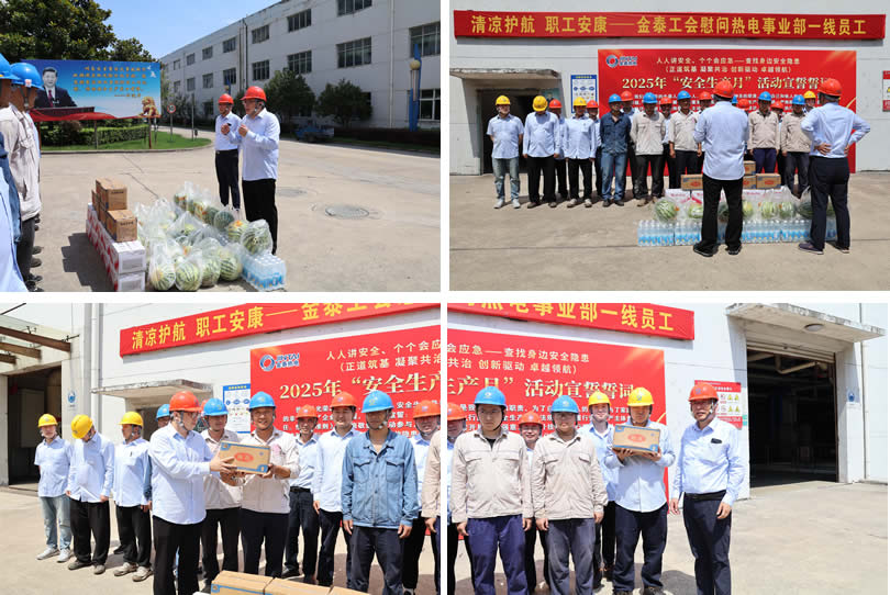 骄阳似火的七月,热电事业部生产一线的全体员工依然坚守岗位,发扬“艰苦奋斗”的金泰精神,用汗水诠释着责任与担当。在这热浪蒸腾的日子,公司工会组织开展了“清凉护航 职工安康”的慰问活动,为奋战在一线的同志们送去关怀与鼓励,将《金泰忠诚准则》中“视同事为亲人”的企业文化在生产线上生根发芽。